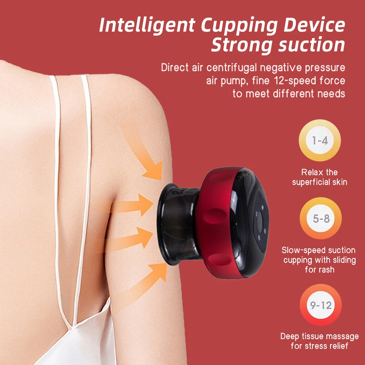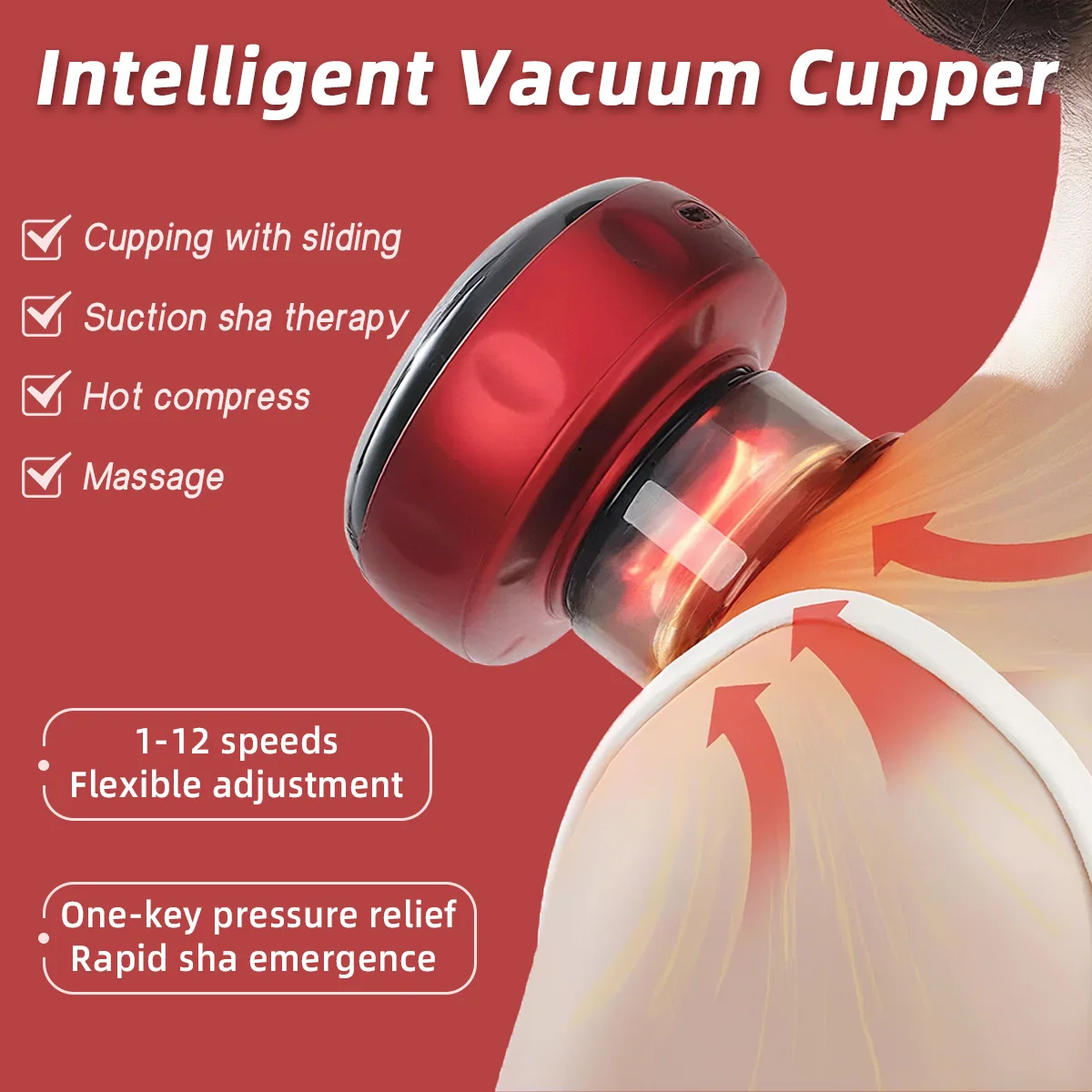 Smart Electric Cupping Massager with 12 Adjustable Levels Vacuum Adsorption Red Light Hot Compress Scraping Shoulders Neck Back